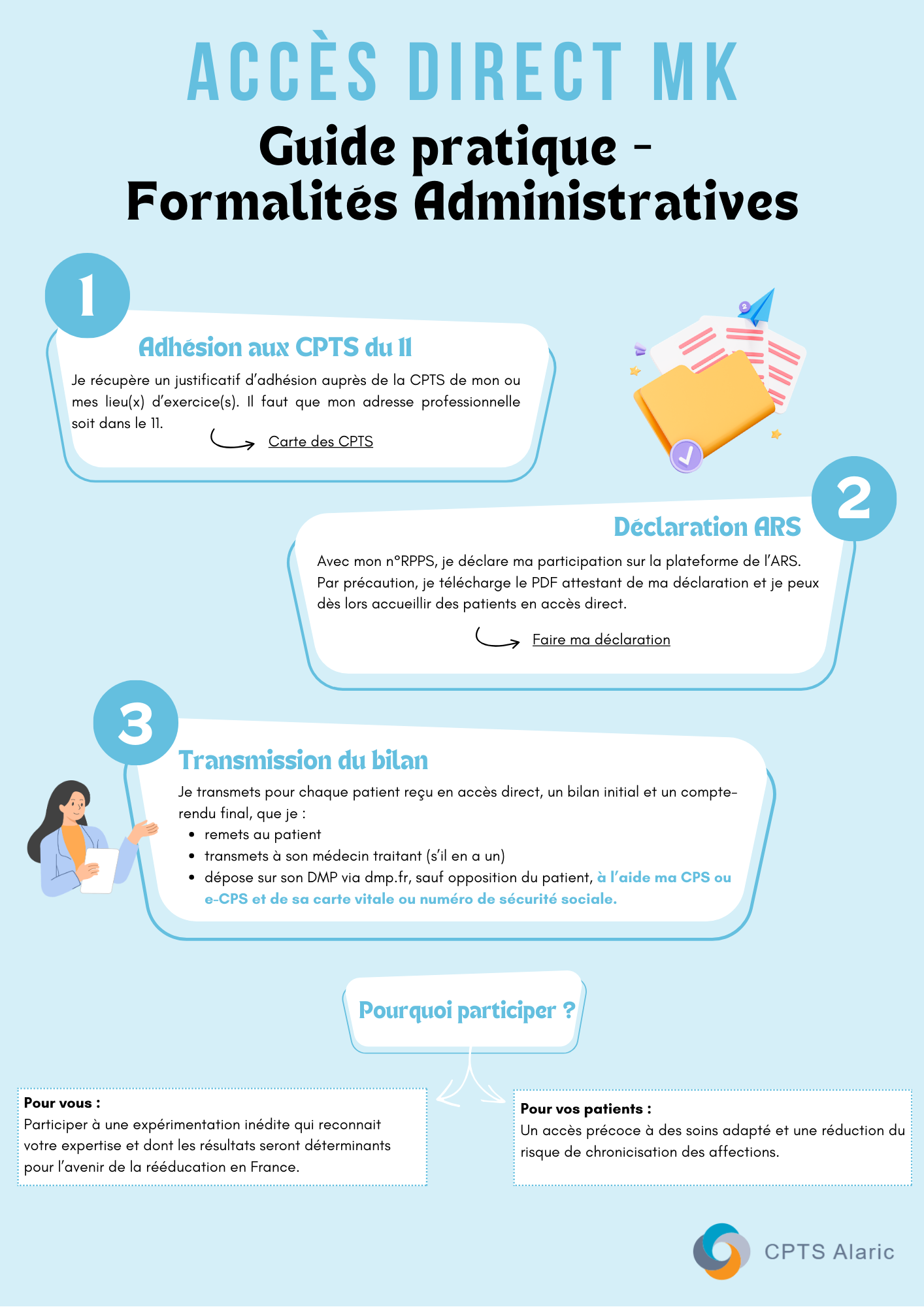 Vous trouverez le guide pratique pour l’accès direct aux masseurs kinésithérapeutes en cliquant ici